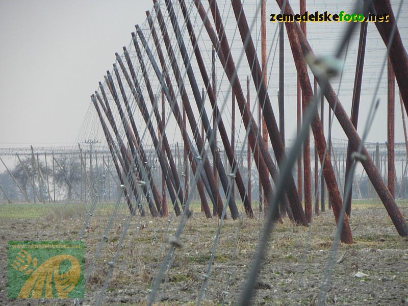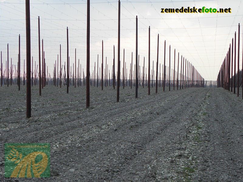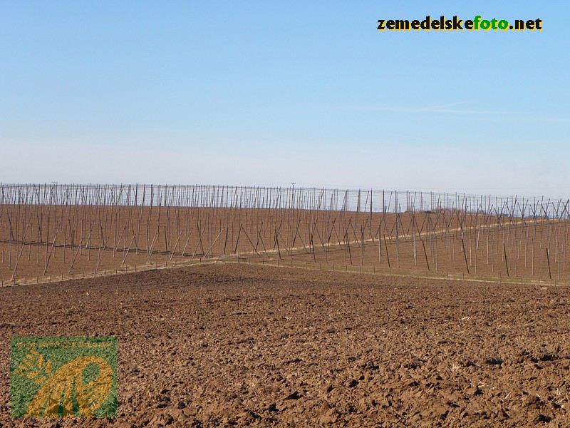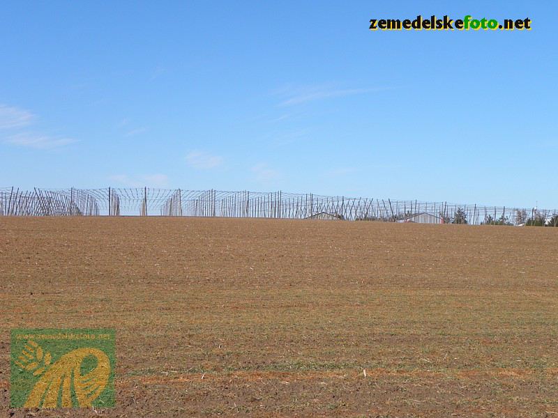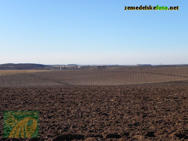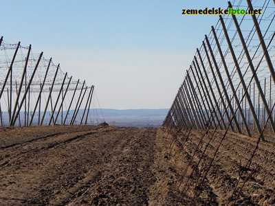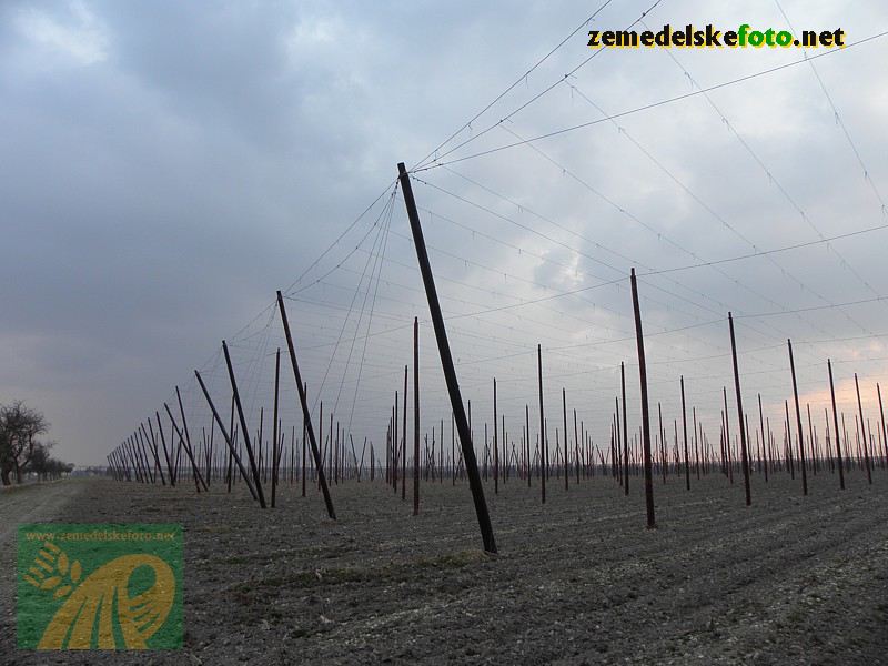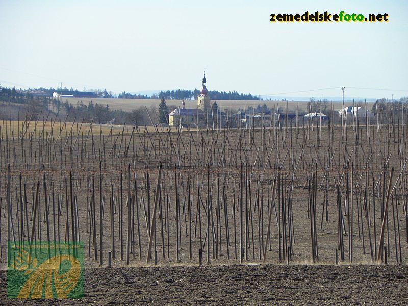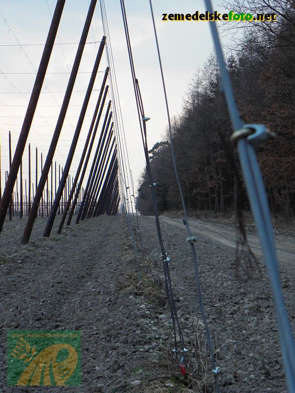Chmelnice na Tršicku v době vegetačního klidu (3.3.2012), v pozadí se rýsuje hřeben Drahanské vrchoviny.