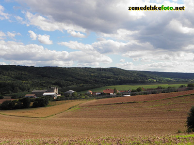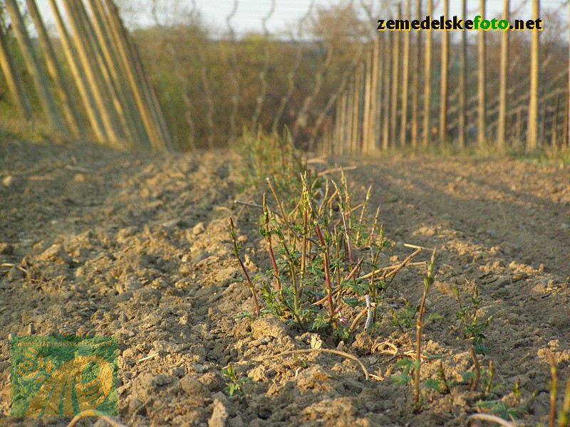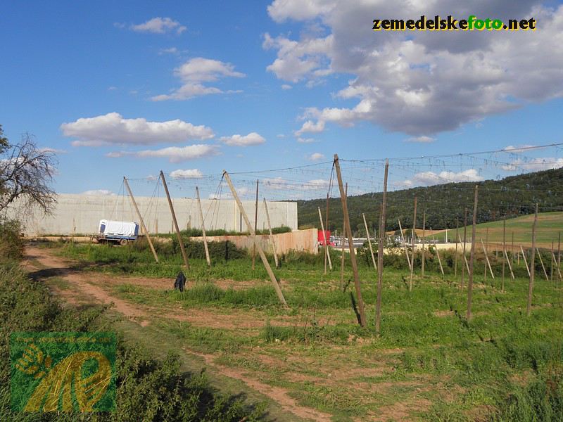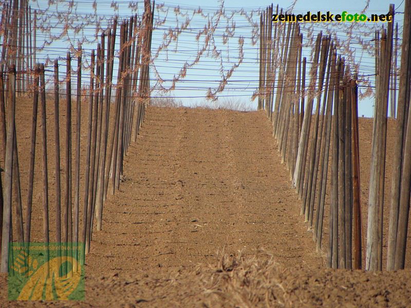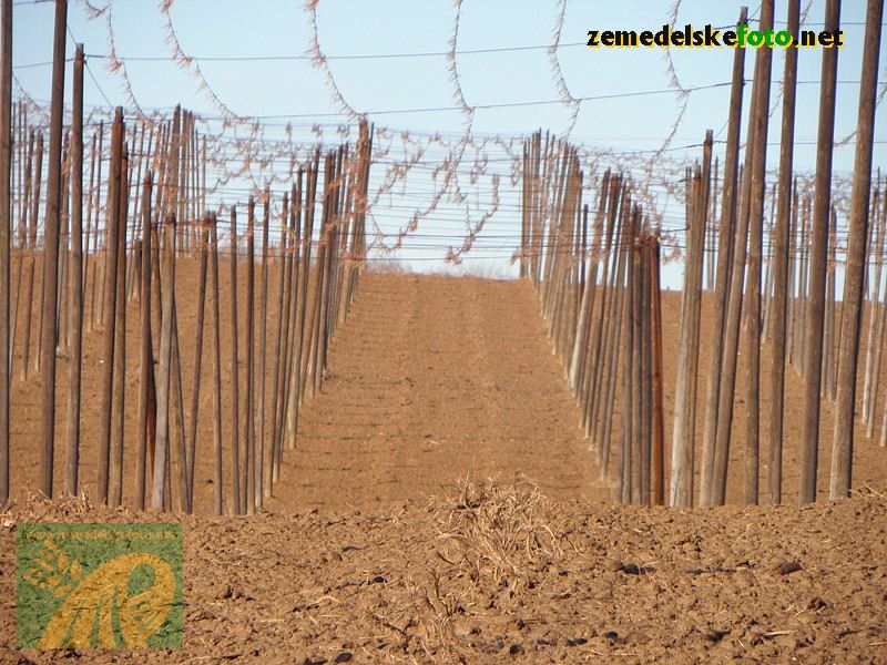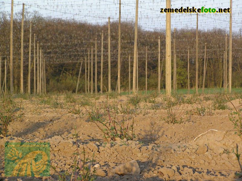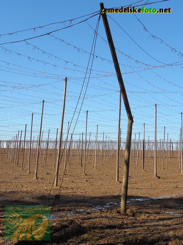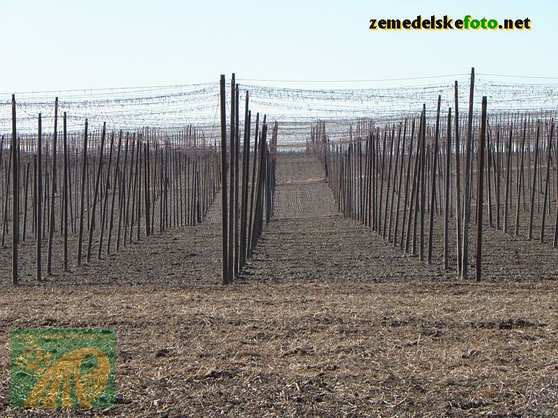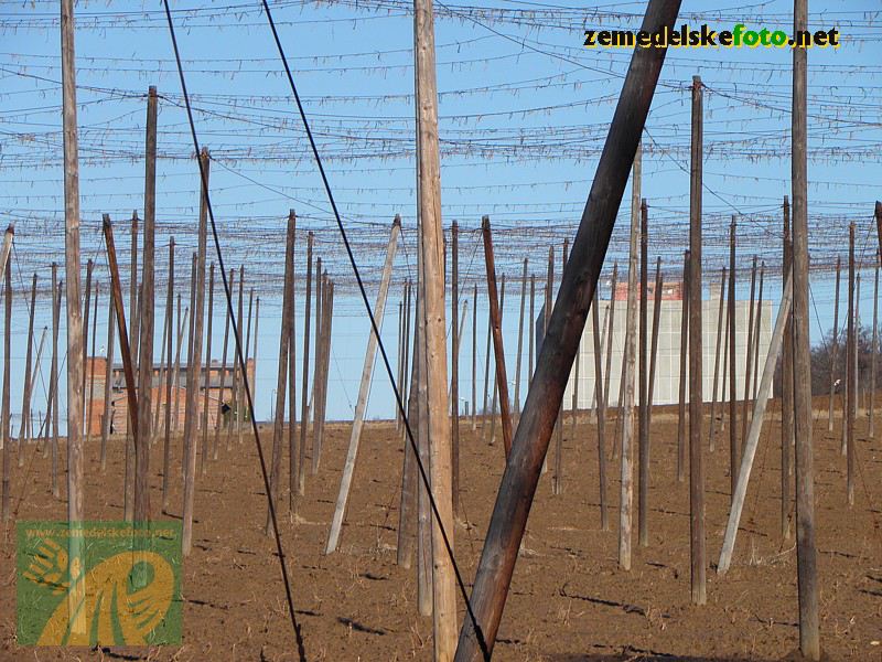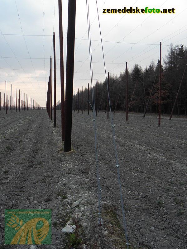 Chmelnice na Tršicku v době vegetačního klidu (3.3.2012), v pozadí se rýsuje hřeben Drahanské vrchoviny.